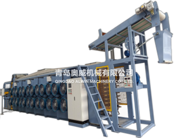 本裝置可滿足煉膠過程中,與密煉機(jī)或捏煉機(jī)以及雙錐自動喂料壓片機(jī)或開煉機(jī)進(jìn)行組合,形成自動生產(chǎn)線,對膠片的冷卻,切片,疊片等工藝,以達(dá)到連續(xù)生產(chǎn)作業(yè)的效果。膠片的冷卻方式可根據(jù)用戶要求,采用噴淋式或浸泡式。