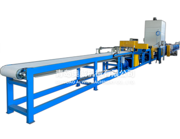 主要用于帶膠墊的氣門嘴內(nèi)胎生產(chǎn),也可用于汽車、卡車內(nèi)胎的生產(chǎn)。本線主要配備了冷卻、收縮、吹干,傳感器定長裁斷裝置,自動(dòng)打孔貼嘴裝置,胎筒內(nèi)外隔離劑噴粉裝置及胎筒收取,形成內(nèi)胎生產(chǎn)整套自動(dòng)化。