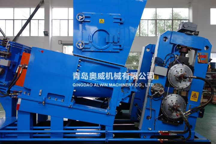雙螺桿擠出壓片機(jī)與密煉機(jī)等配套使用,將密煉機(jī)分批排出的膠料經(jīng)雙螺桿擠出壓片機(jī)壓制成連續(xù)膠片
